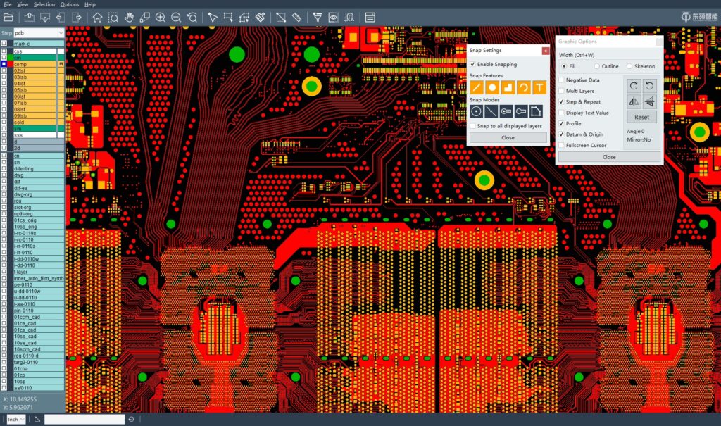 OpenCAM是由無錫東領(lǐng)智能科技股份有限公司開發(fā)的一款輕量級(jí)PCB CAM圖形查看器。基于C++開發(fā),具有超高的圖形顯示效率,完全支持ODB++8.1格式。